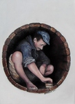 2016rond wijnvat blootvoets man schrobben dorpskroeg